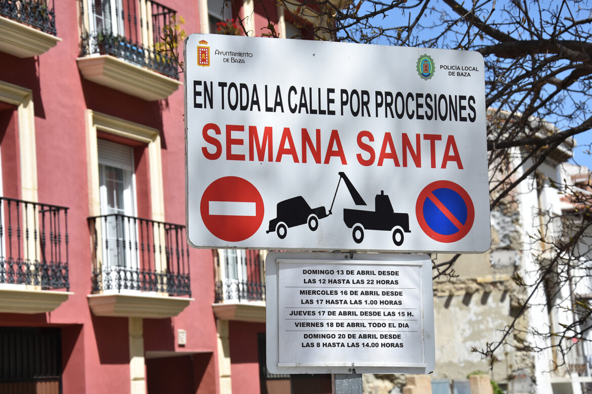 Como es habitual y con las mismas características de años pasados, la concejalía de Gobernación ha marcado las calles afectadas por los recorridos procesionales con un total de 160 señales de distinto tamaño y contenido. En ellas se nos informa del sector afectado por las procesiones, de las fechas, y de los horarios exactos en los que está prohibido estacionar. Igualmente se han instalado hitos y señales de balizamiento para evitar el acceso de vehículos a los recorridos de los pasos. La Policía Local ha ampliado en más de 29 refuerzos los servicios para salvaguardar la seguridad de las personas que saldrán a la calle en estos días, y que los recorridos queden despejados de vehículos. Con todo, la concejala de Gobernación ha pedido colaboración a los ciudadanos para que la Semana Santa de Baza transcurra con el menor número posible de incidencias.